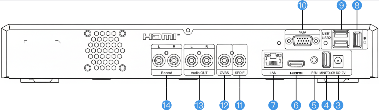 | 11 | 同轴输出 | 12 | CVBS输出 |
